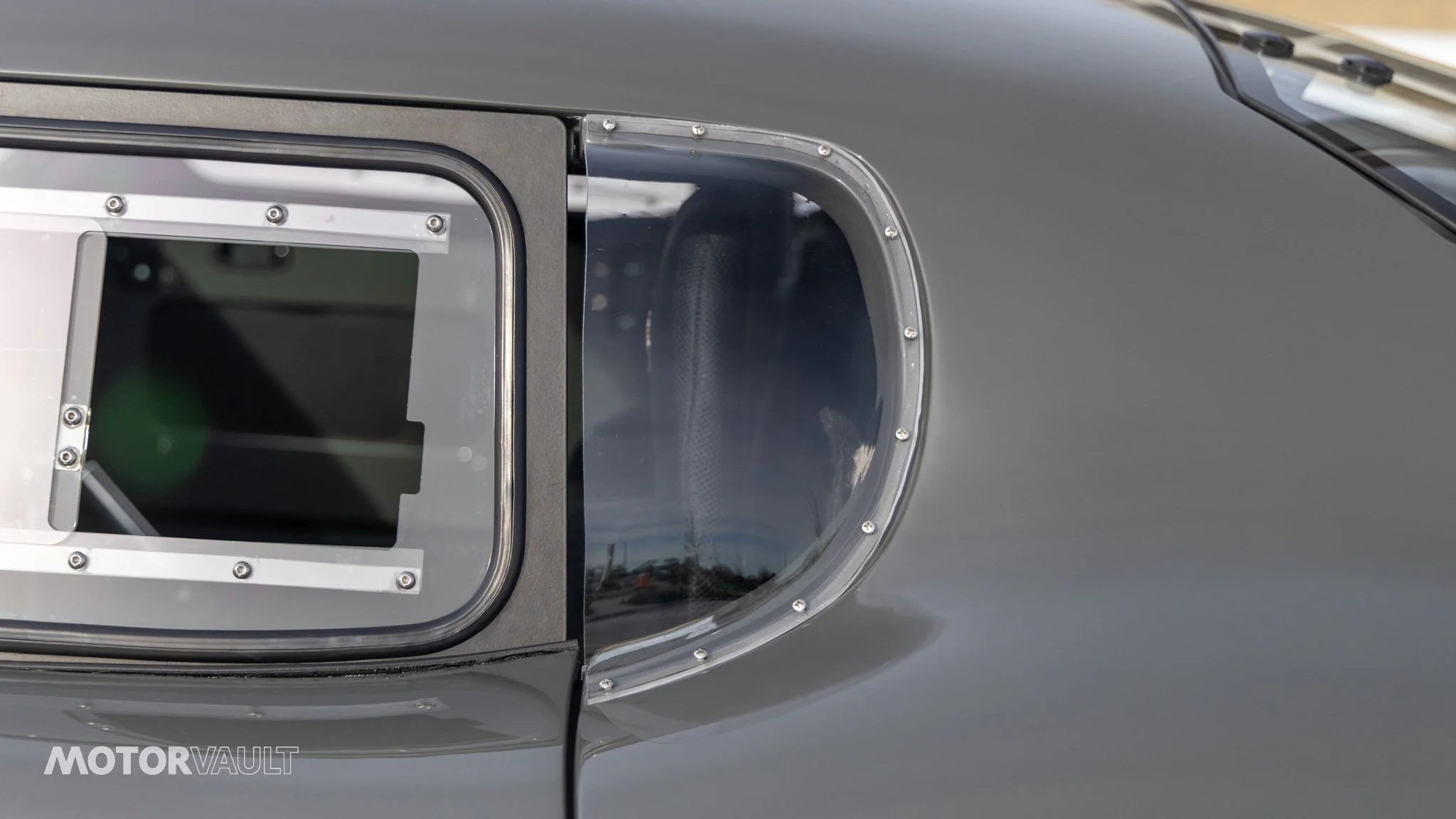 - Plastic side windows